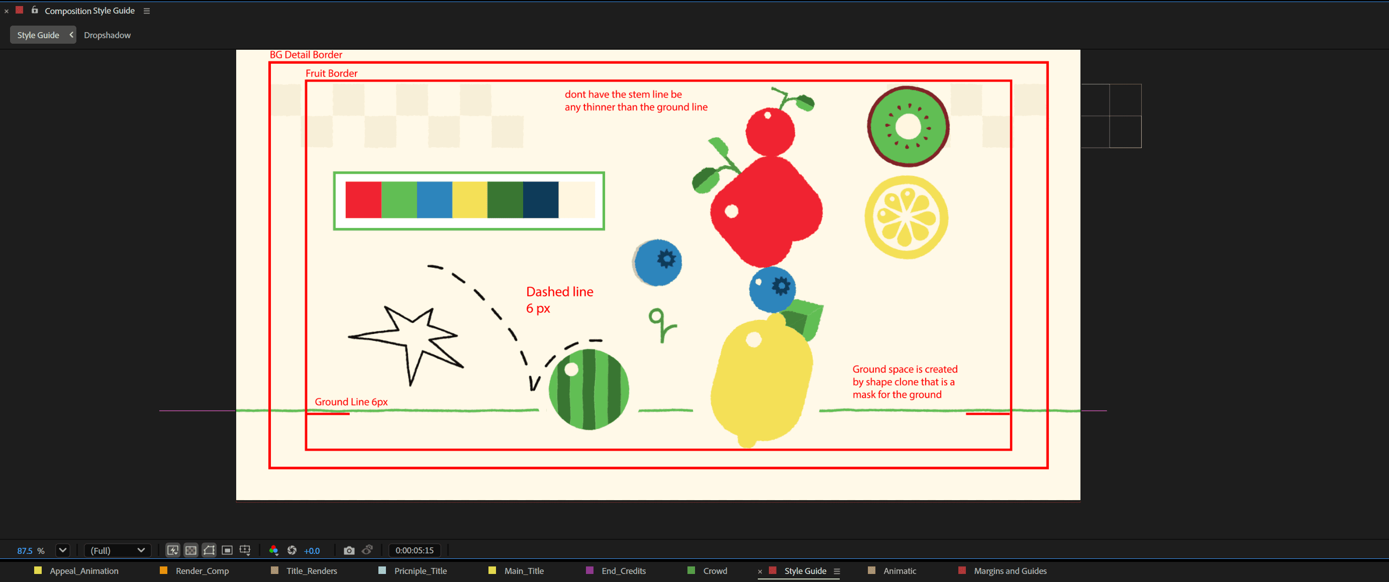 TO help my team Follow strict placement guides, style rules, and texture/color unity, I whipped together a design guide withijn after effects that easily allowed them to stay consistance and unified with the entire group.