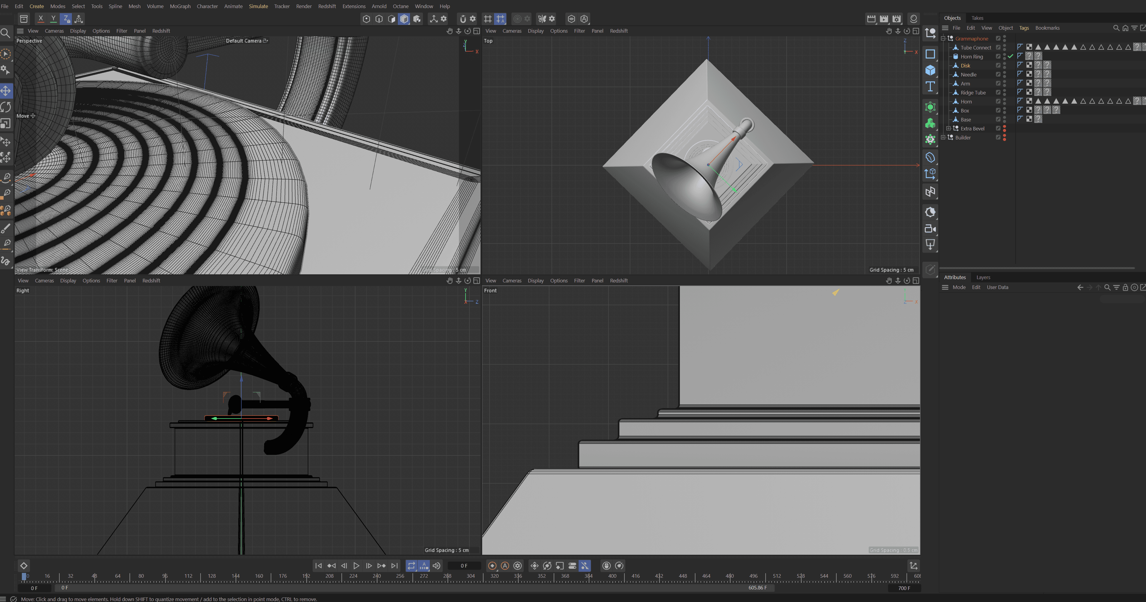 Before I could create the visuals, I needed the star of the show — the iconic Gramophone trophy. I referenced images from online angles and started modeling in Cinema 4D, taking time to make every corner thoughtfully measuerd and sharp!