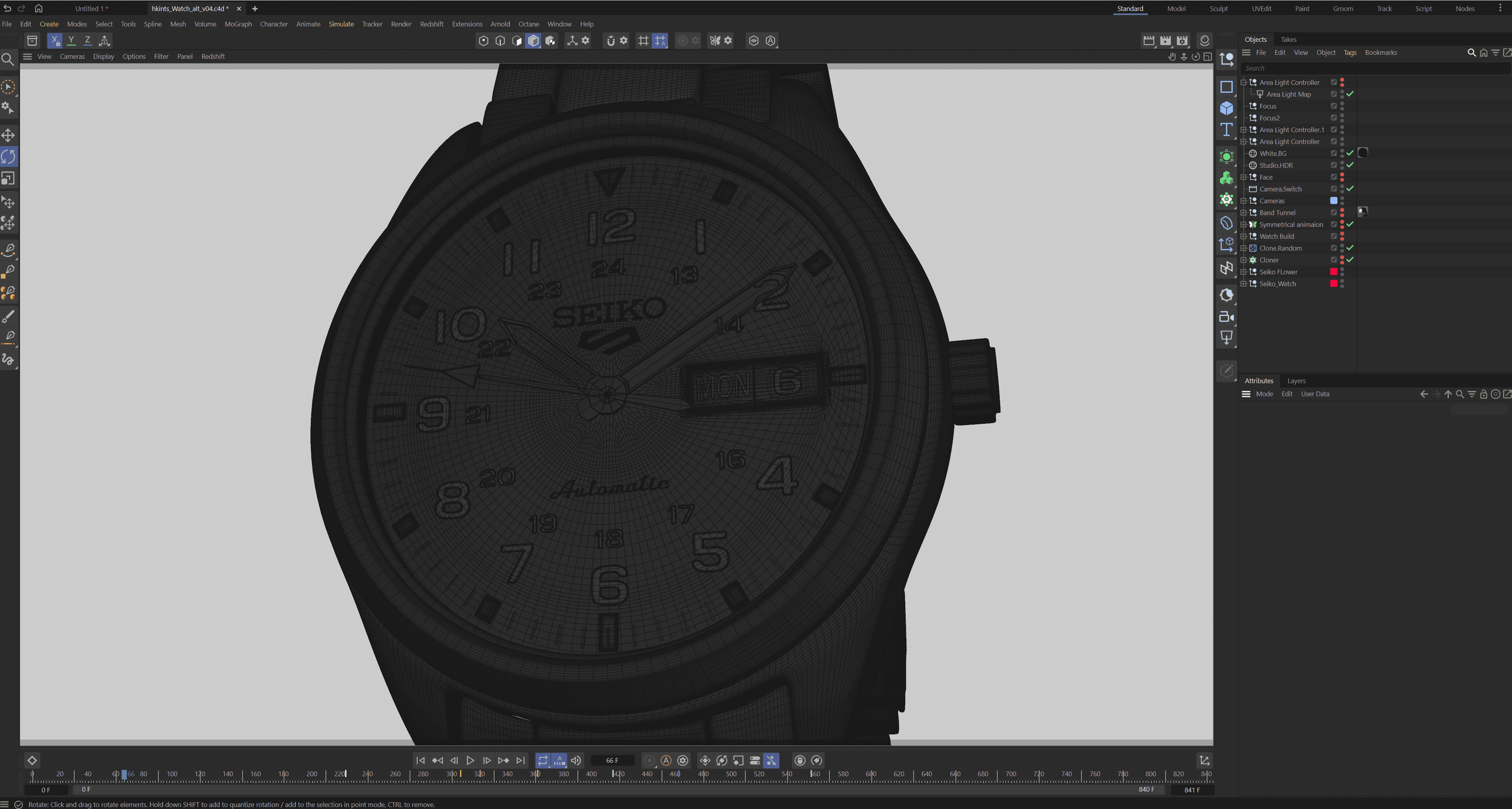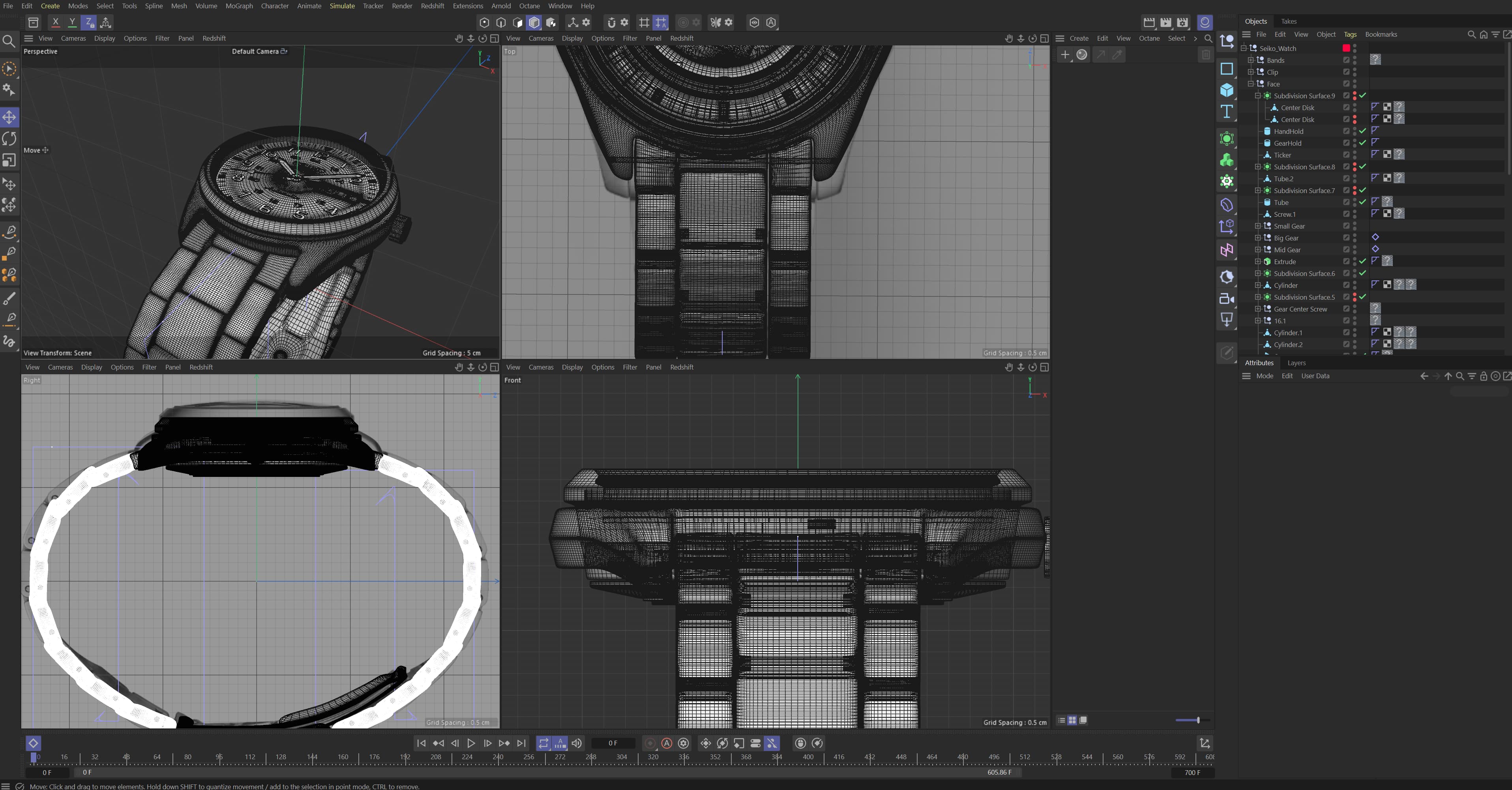 I was drawn to Seiko's "Sport SRPG27" watch model for its sophisticated figure and clean metallic finish. I then scoured the internet for any images of the model, even taking screenshots of watch manuals for reference, going into modeling in Cinema 4D.