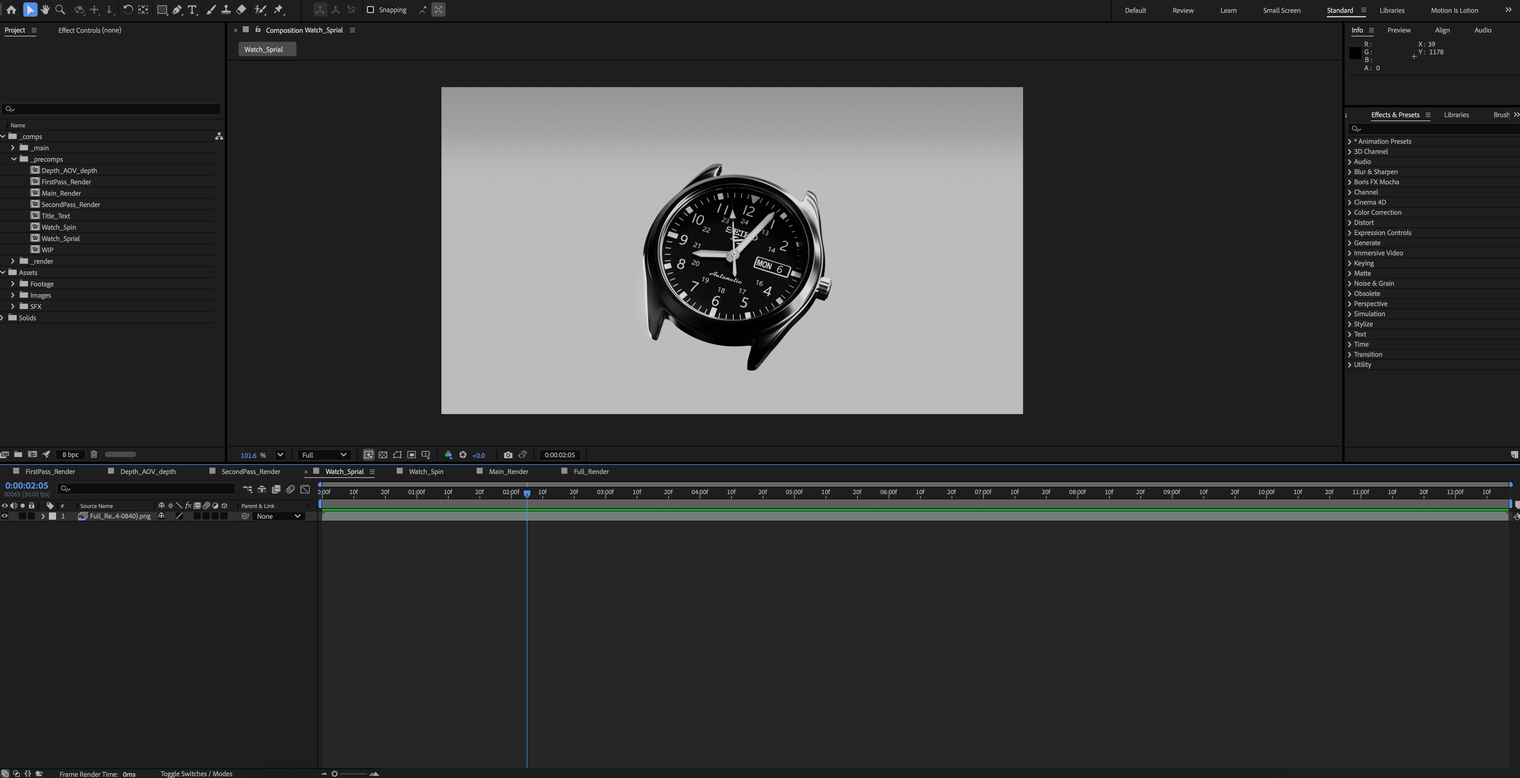 Seiko is seeking a short 3D animated product spot that highlights the precision and craftsmanship of a Seiko timepiece. The animation should sync with a 10–15 second audio clip, using refined F-Curve animation, cinematic lighting, and smooth camera movement to reveal the dial, hands, and internal mechanics, creating strong audio-visual harmony that reflects Seiko’s legacy of precision and innovation.